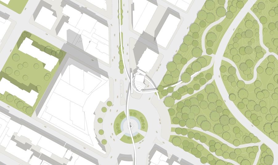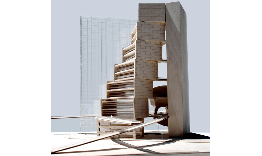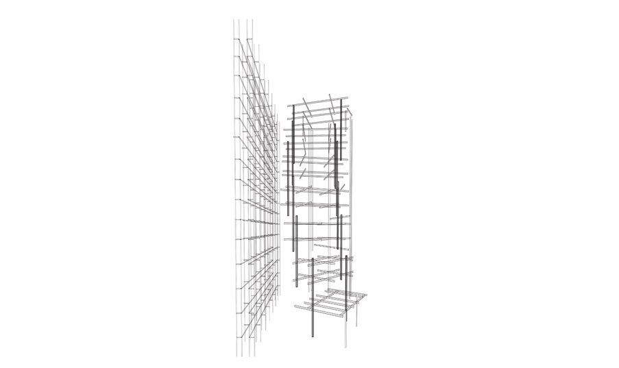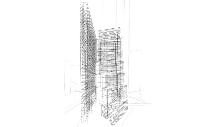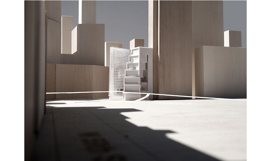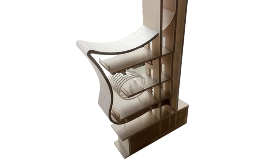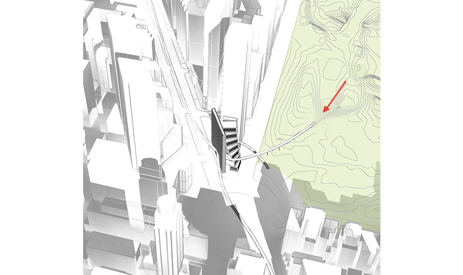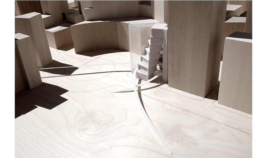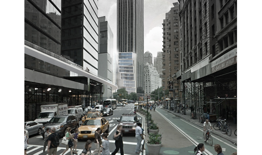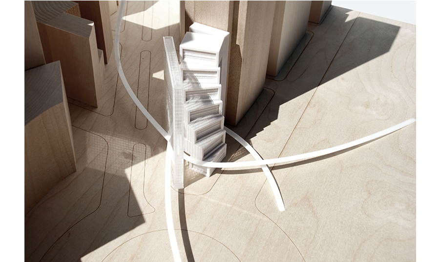 The building’s design has (3) components to it: athletic housing units, a bike shop with branching bike ramps to the park, and a bike depository. The cafe on the ground floor addresses Central Park west and Columbus Circle with outdoor seating. The rectangular form is a modular expression of the program inside. The temporary housing above keeps the same language as the cafe but uses different treatments of glass to reflect private versus public space. As it twists to address Columbus Circle, 8th Ave and Broadway, the building gains solar exposure as it reaches 200’ and attaches to a core that orientates with Trump Tower. The ramps act as a literal connection to the park from the athletic hub. As the paths move from the organic nature of the park into the building, the vitality of the park was reflected in the organic form that acts as the heart of the complex and houses the bike and athletic shop. The bike depository is very linear and stands tall to address Broadway. It is a long linear space that uses an automated retrieval system to collect a patrons bike quickly. The stored bicycles create an interactive facade as they get moved around. The hierarchy of the three elements creates a space that won’t be forgotten by athletes and residents alike.